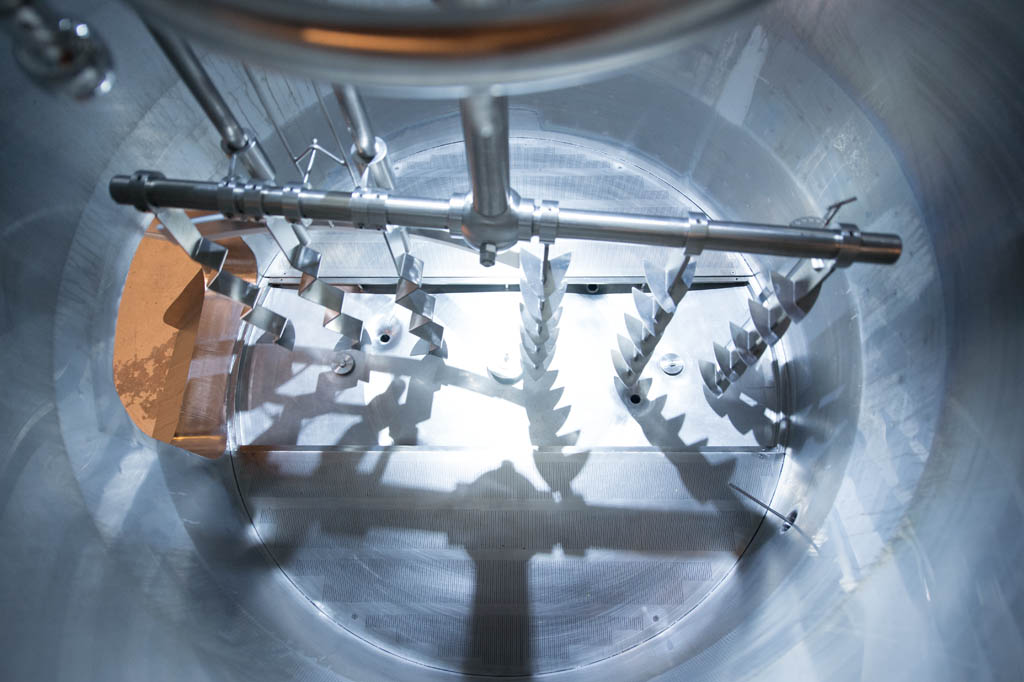 糖化過濾槽形式糖化鍋攪拌的主要有兩種形式:一是采用具有排糟功能的攪拌槳,必要時(shí)還可以設(shè)置雙層槳。這種形式的攪拌槳混合和固液懸浮功能良好,能夠保證物料各點(diǎn)溫度基本一致,但是這種形式的攪拌槳舍棄了耕糟功能,在需要耕糟的情景下弱點(diǎn)必現(xiàn)。