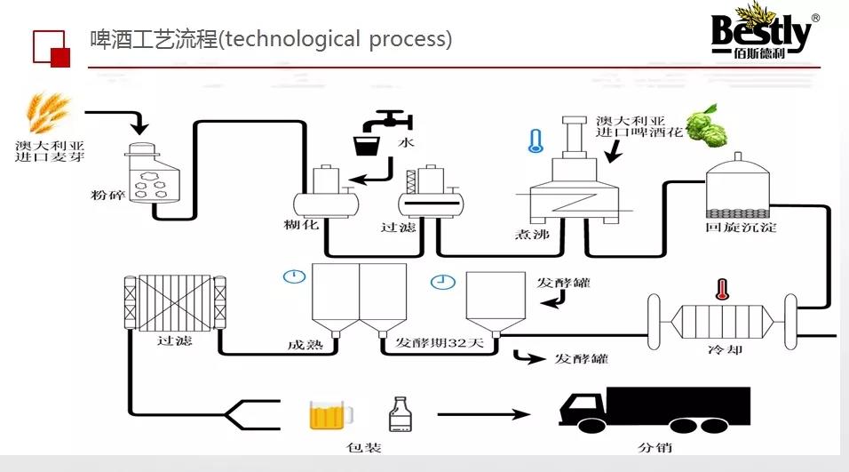 啤酒釀造過程簡單說來就是:投料-粉碎-糖化-過濾-煮沸-沉淀-發(fā)酵。