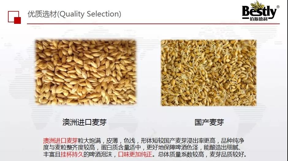 第一種原料是麥芽,分別為進(jìn)口麥芽和國產(chǎn)麥芽。