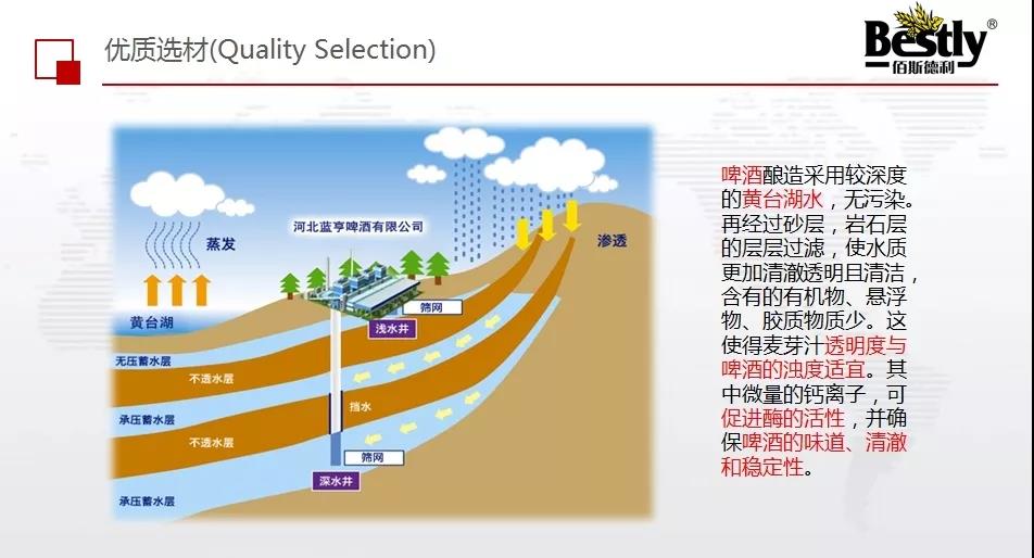 第三種原料是水,水是啤酒的大部分原料,酒廠選擇工廠地理位置時需考慮到周邊水質(zhì)情況,優(yōu)質(zhì)的水資源對啤酒的透明度和穩(wěn)定性有很大的影響。